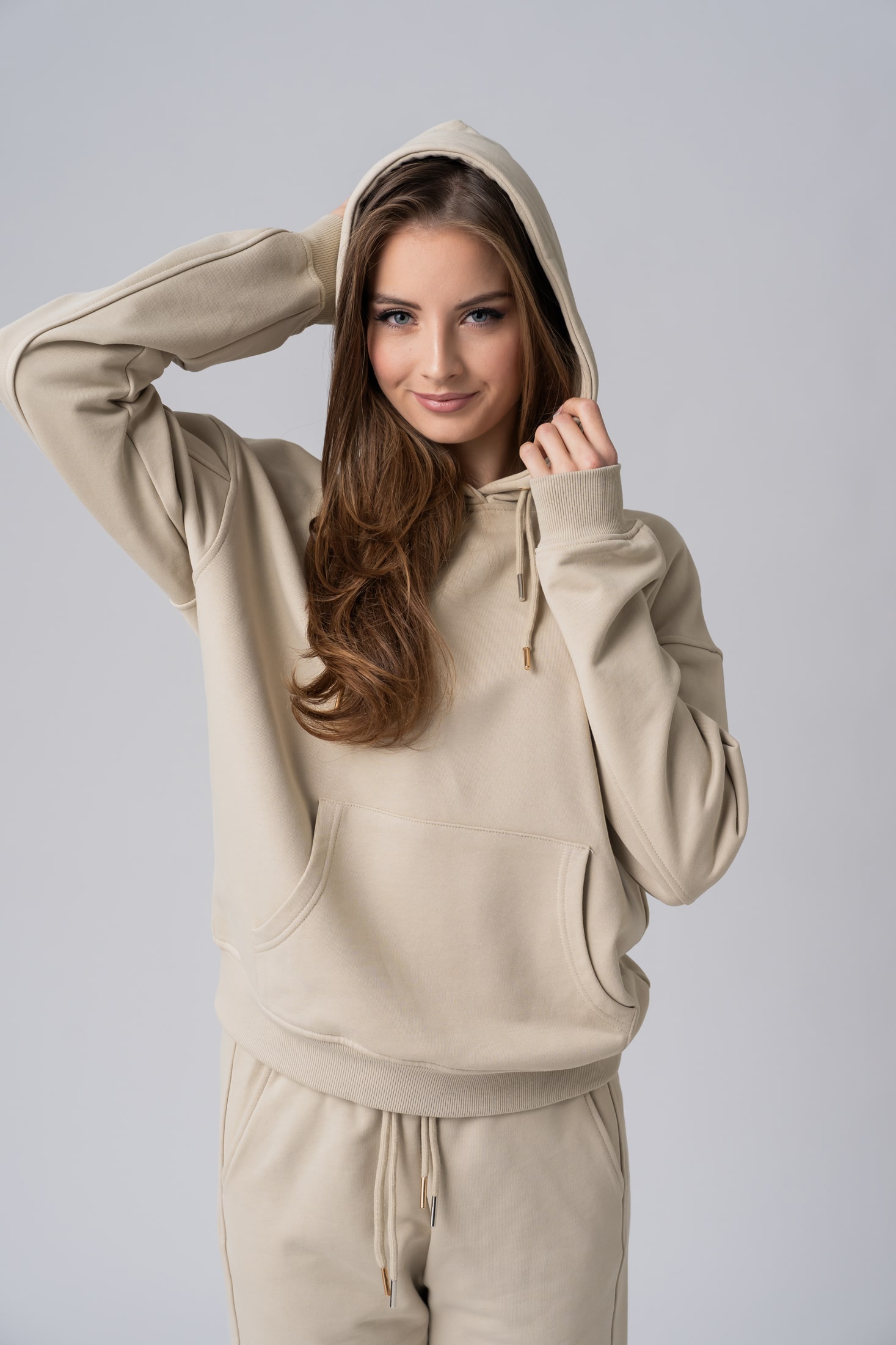 A classic hoodie made from 100% cotton for breathable comfort and conscious style. It has a roomy hood, kangaroo pocket, and ribbed cuffs, offering a regular fit that effortlessly merges cosy ease with sustainable design